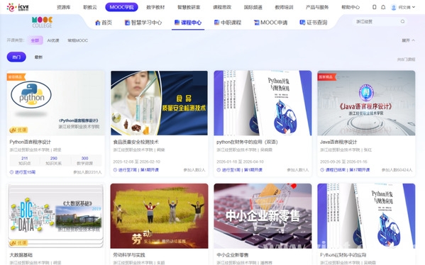 (二)构建课程建设新范式,打造数智融合新生态。以“对接岗位,数智融合”为目标,构建“平台—资源—模式—空间—评价”五位一体课程建设模式。打造产教协同课程开发中心,通过校级课程开发中心申报,明确资源建设要求;建设资源复合型智慧课程。发布《智慧课程建设指南》,立项校级智慧课程与人工智能课程,构建“基础数字资源+多模态互动资源”体系;探索三元协同式教学模式。开展“AI+智慧课堂”认定,构建以学习者为中心、数据驱动、自我演进的“师-生-机”三元协同教学新形态;创设智慧赋能型教学环境。迭代升级学在经贸等智慧教学平台,保障课程智能体、AI助教等核心场景顺畅运行;构建数据驱动型管理闭环。完善学情分析平台,推动利用AI技术全程采集数据,形成“建设—实施—评价—反馈—改进”质量闭环。